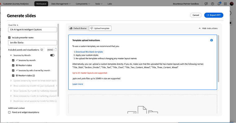 The ability to generate slides directly from CJA projects has the potential to streamline how insights are shared across organizations. For teams that regularly translate dashboards into executive presentations, this could significantly reduce manual effort.