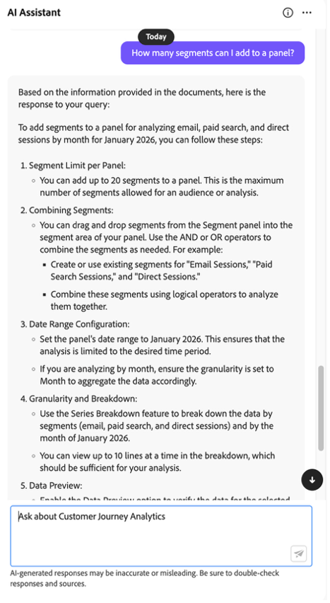 Important Disclaimer: As with other AI assistants, Adobe does tell you that AI-generated responses may be inaccurate or misleading. Be sure to double-check responses and sources.